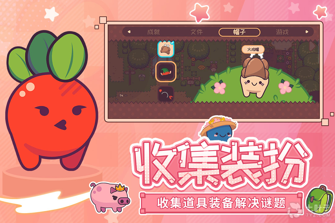 大头菜菜历险记是一款可爱风像素冒险手游。在游戏中你将扮演一颗机灵可爱的大头菜。由于未能及时缴税,你从家中被驱逐出去,由此开启了你向洋葱市长偿还巨额债务的史诗任务旅程。收集各种工具来解决精彩的植物谜题,遇见稀奇古怪的蔬菜和水果,并与大大小小的动物开展危险的战斗。一路走来,你将揭露破坏花园社区安定的阴谋,最终成为一名英雄!