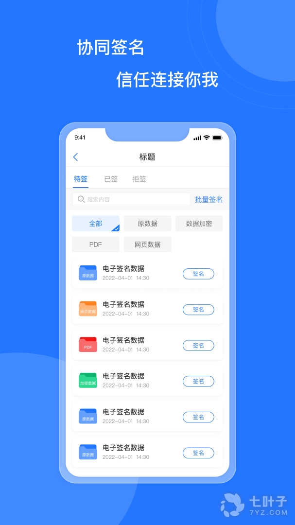2、协同签名,一款签名类工具它为所有用户在各个业务场景中无纸化办公提供数字化签名、电子证书