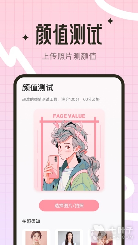 1、在软件上面有着非常多的功能,可以帮助用户们来进行测试自己的颜值分数的,用户们只需要上传自己的图片即可进行测试,软件上面还能记录你的测试结果,用起来十分的有趣