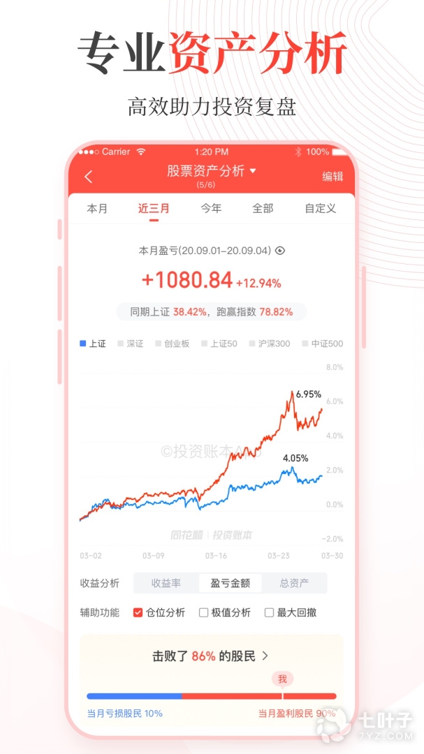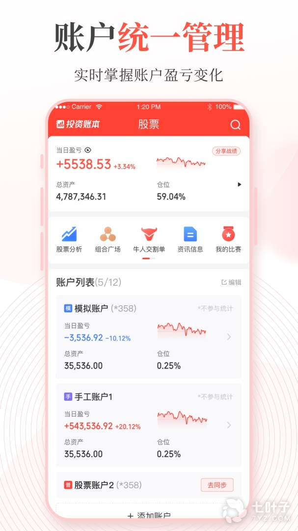2、是上市公司同花顺全力打造的一款专业投资记账和资产管理APP,可帮助您有效的管理账户,实现对股票及基金投资账户的全方位了解,认清自己投资能力,寻找并改善自己的投资方法,进而提高用户控制风险、理性投资、稳定获利的能力