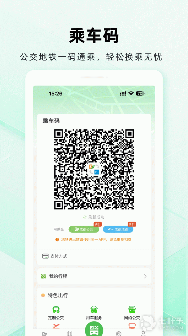 1、公交出行刷码过闸,免充值,快速进出,轻松出行