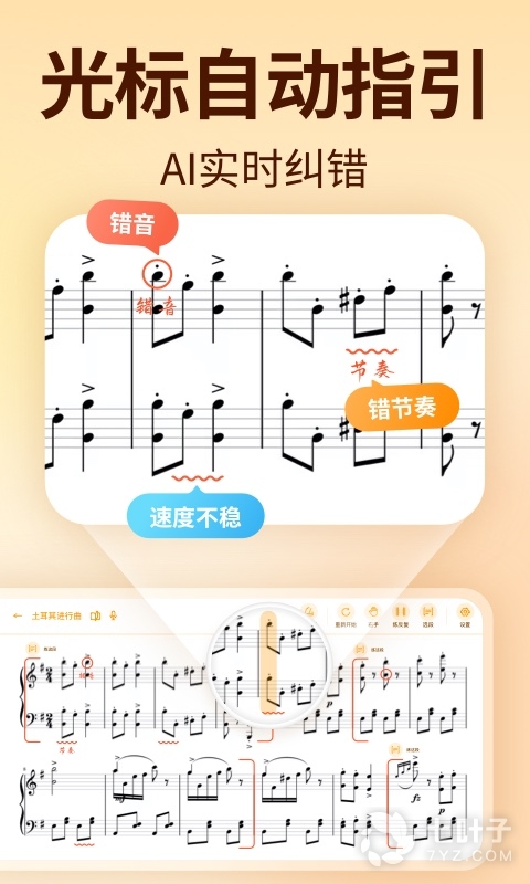 【跟弹练谱有效果】弹奏练习时音符有光标移动指引,练琴节奏自己掌握,想怎么弹就怎么弹。