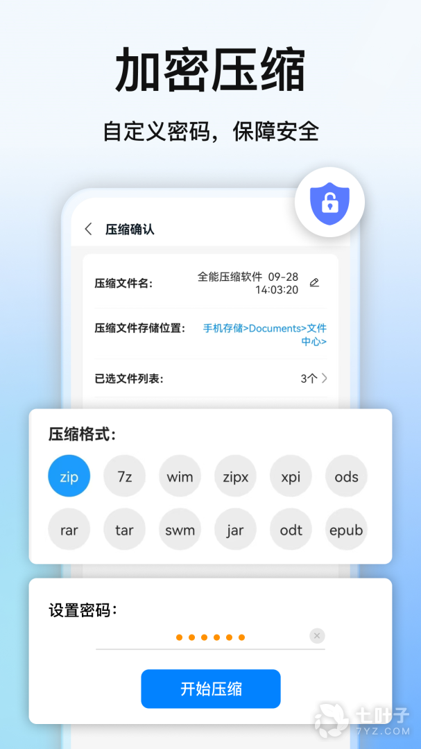 1、支持自定义设置压缩密码,加密保存私密文件,让你的隐私不再泄露