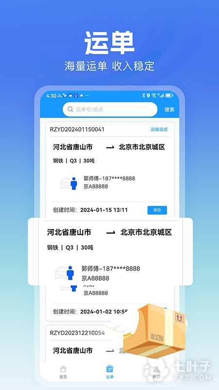 2、司机可以在货源大厅快速抢单,能够根据订单距离和收益来选择性接单,可以随时的和客户进行沟通,提现也十分便捷,欢迎下载货车联司机端进行使用