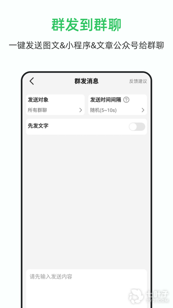 3、用户可以通过软件将文字、图片、视频等不同形式的信息群发给大家,再也不需要一个个辛苦的编辑发送了。软件除了群发文字、图片等信息,还能够群发小程序、公众号等内容,能够满足大部分用户的需求