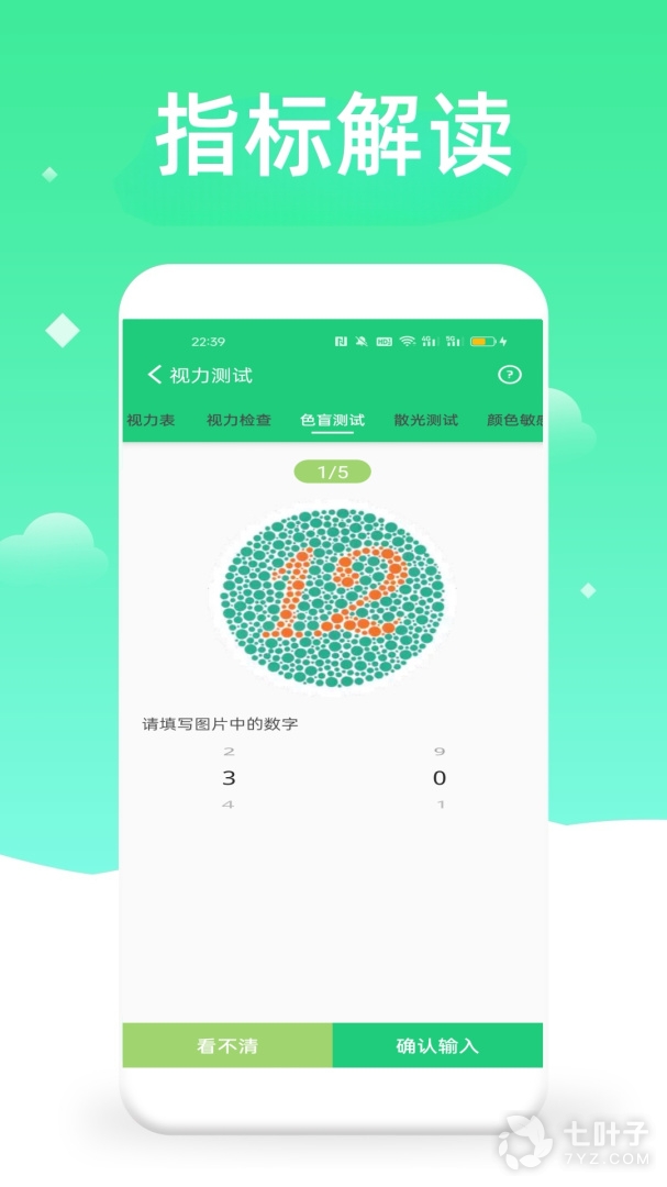 2、视力测试:提供了视力测试表,可以根据测试表进行测试